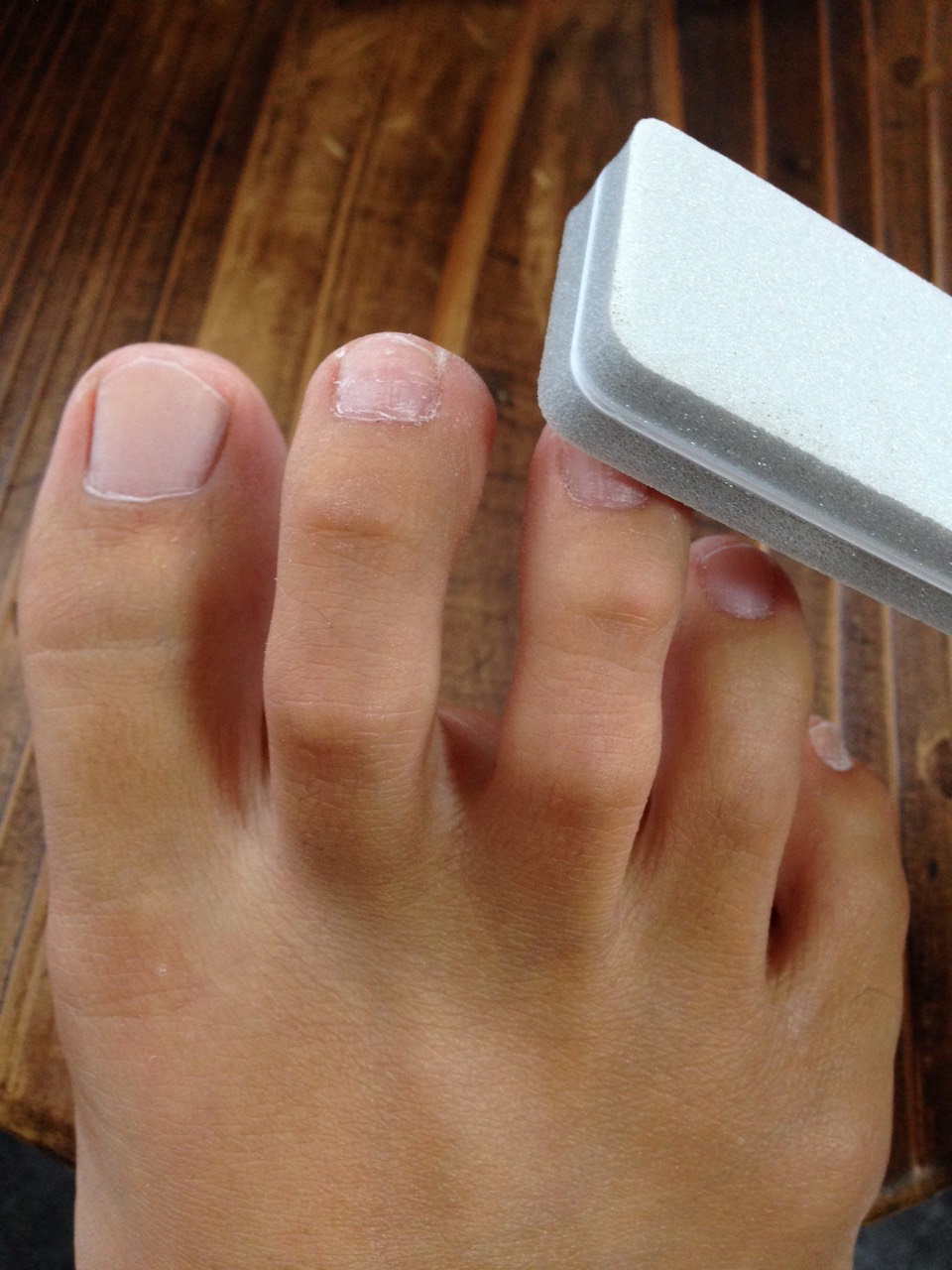 ゼブラファイルを使って、足指の爪の長さと形を調整。