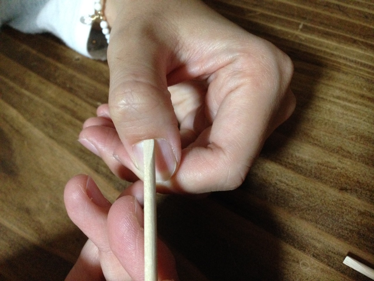 ウッドスティックを使って余分な甘皮を押し上げます。