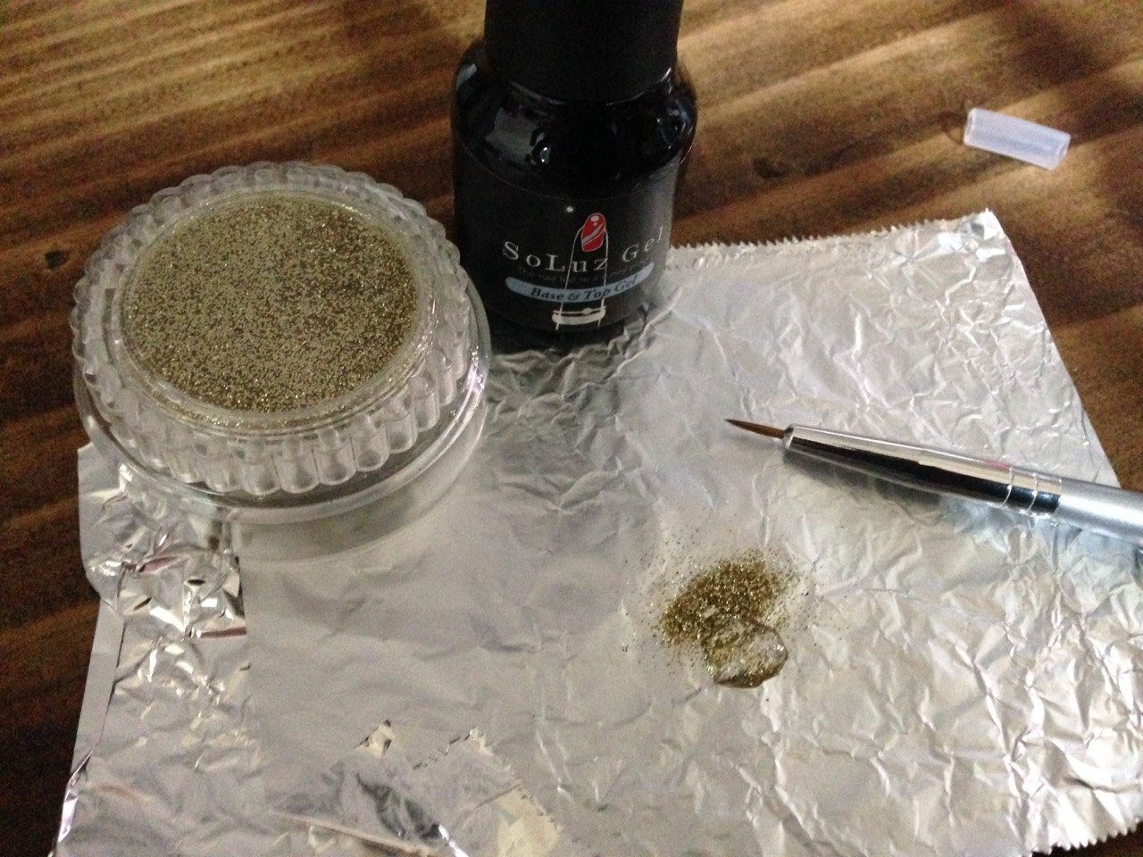 アルミホイルに付属のグリッターを出してベース&トップコートと混ぜます。
