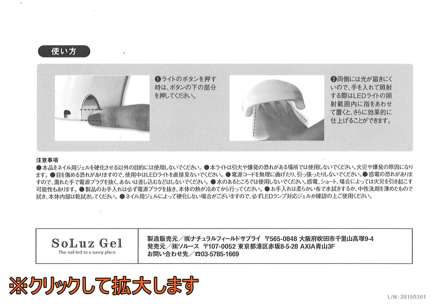 ▼以下は、上記に写真を掲載した、SoLuzGel(ソルースジェル)の本体説明書/裏面(2)に書かれている文章と同じです▼
