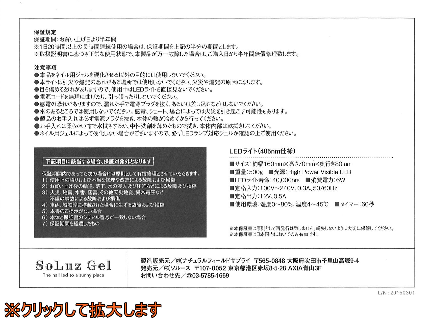 ▼以下は、上記に写真を掲載した、SoLuzGel(ソルースジェル)の本体説明書/表面に書かれている文章と同じです▼